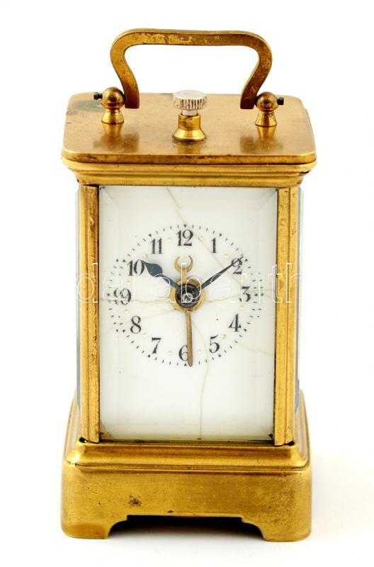 Leírás: Utazó óra sérült porcelán számlappal, jelzés nélkül, működik, m:9 cm