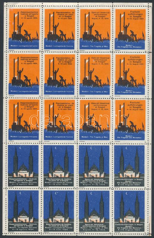 1934 Madách: Az ember tragédiája a Szegedi Szabadtéri játékokon 20é ki... https://www.darabanth.com/hu/286-Gyorsarveres/286.0/Festmeny-mutargy-papirregiseg-egyeb/Parafilatelia~13/1934-Madach-Az-ember-tragediaja-a-Szegedi-Szabadteri-jatekokon-20e-kisiv~II1498080