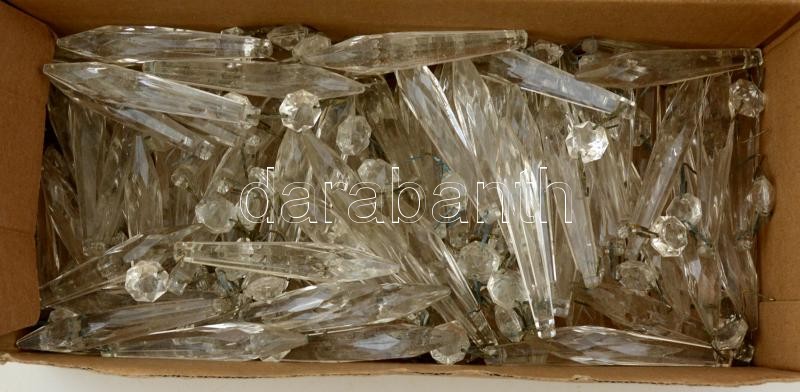Leírás: Üveg csillárdíszek, 105 db, jó állapotban, h: 11 cm