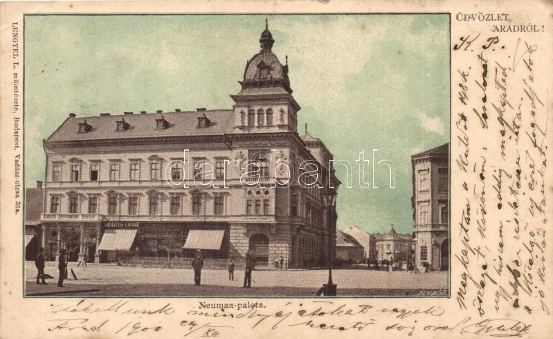 Arad, Neuman-palota, Lengyel L. kiadása / palace (kis szakadás / small... https://www.darabanth.com/hu/286-Gyorsarveres/286.0/Kepeslapok/Erdely~200006/Arad-Neuman-palota-Lengyel-L-kiadasa-palace-kis-szakadas-small-tear~II1495904
