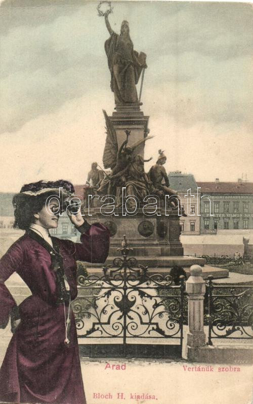 Arad, Vértanúk szobra, hölgy távcsővel, Porter Vilmos üzlete, Bloch H.... https://www.darabanth.com/hu/286-Gyorsarveres/286.0/Kepeslapok/Erdely~200006/Arad-Vertanuk-szobra-holgy-tavcsovel-Porter-Vilmos-uzlete-Bloch-H-kiadasa-statue-lady~II1498036