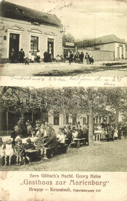 Brassó, Kronstadt, Brasov; Sara Göltsch utóda Georg Reiss Vendéglője Marienburghoz; Gyár utca 118. Atelier Gust / Gatshaus zur Marienburg, Fabrikstrasse 118. / guest house (fa)