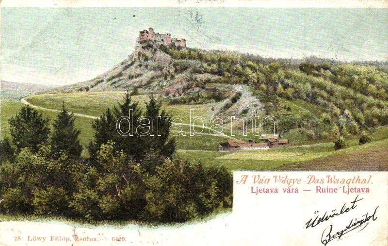 Leírás: Vág-völgye, Ljetava vár, Löwy Fülöp kiadása / valley, castle (kis szakadás / small tear)