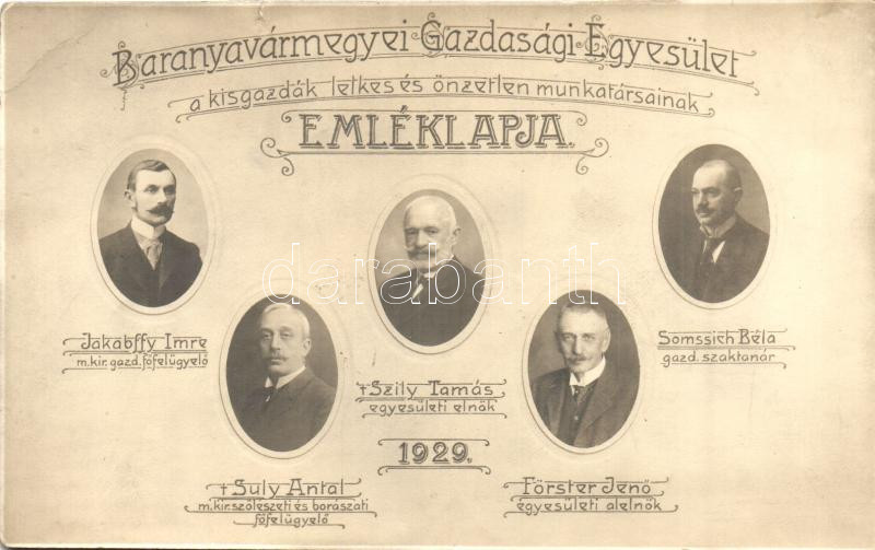 Baranya vármegyei gazdasági egyesület emléklapja, kisgazdák, Zelesny Károly kiadása / Baranya county economic union commemorative, Hungarian smallholders (r)