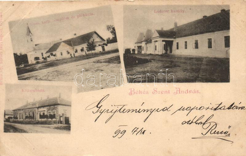 Leírás: 1899 Békésszentandrás, Római katolikus templom és plébánia, Léderer kastély, Községháza, Békés Gy. kiadása (EK)