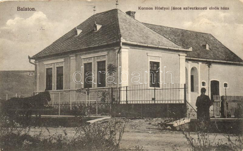 Balaton (Heves megye), Kormos Hóstyai János szövetkezeti elnök háza https://www.darabanth.com/hu/286-Gyorsarveres/286.0/Kepeslapok/Magyarorszag~200005/Balaton-Heves-megye-Kormos-Hostyai-Janos-szovetkezeti-elnok-haza~II1496511