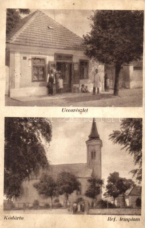 Kádárta (Veszprém); utcakép üzlettel, Református templom (fa) https://www.darabanth.com/hu/286-Gyorsarveres/286.0/Kepeslapok/Magyarorszag~200005/Kadarta-Veszprem-utcakep-uzlettel-Reformatus-templom-fa~II1497130