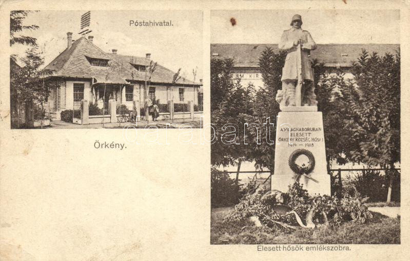 Örkény, postahivatal, Elesett hősök emlékszobra (EK) https://www.darabanth.com/hu/286-Gyorsarveres/286.0/Kepeslapok/Magyarorszag~200005/Orkeny-postahivatal-Elesett-hosok-emlekszobra-EK~II1497472
