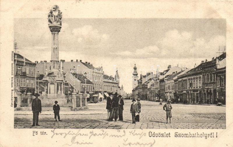 Leírás: Szombathely, Fő tér, Szentháromság szobor, Steiner Testvérek kiadása (EK)