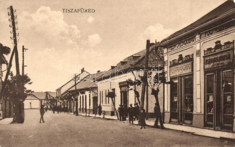 Leírás: Tiszafüred, utcakép, fogyasztási szövetkezet, Goldstein Adolf kiadása
