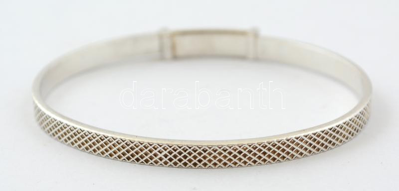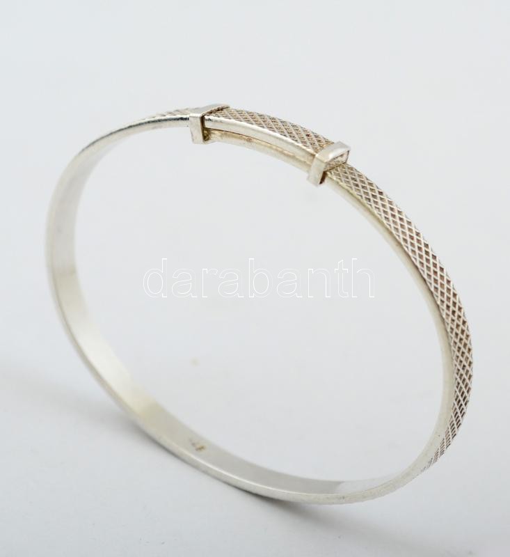 Ezüst(Ag) állítható gyerek karperec, jelzett, 5x3,6 cm, nettó: 8 g https://www.darabanth.com/hu/286-Gyorsarveres/286.0/Nemesfem-Disztargyak-Orak-es-Ekszerek/Nemesfem-Disztargyak-Orak-es-Ekszerek~48/EzustAg-allithato-gyerek-karperec-jelzett-5x3-6-cm-netto-8-g~II1497176