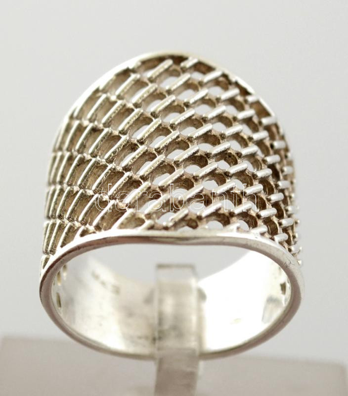 Ezüst(Ag) áttört gyűrű, jelzett, méret: 50, nettó: 4,9 g https://www.darabanth.com/hu/286-Gyorsarveres/286.0/Nemesfem-Disztargyak-Orak-es-Ekszerek/Nemesfem-Disztargyak-Orak-es-Ekszerek~48/EzustAg-attort-gyuru-jelzett-meret-50-netto-4-9-g~II1497244