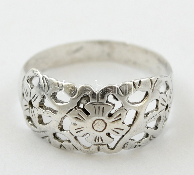Leírás: Ezüst(Ag) áttört virágos gyűrű, jelzett, méret: 59, nettó: 2,4 g
