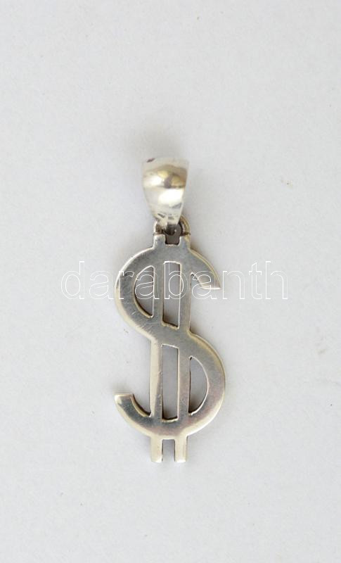 Leírás: Ezüst(Ag) dollár alakú függő, jelzett, 3x1,2 cm, nettó: 2,3 g