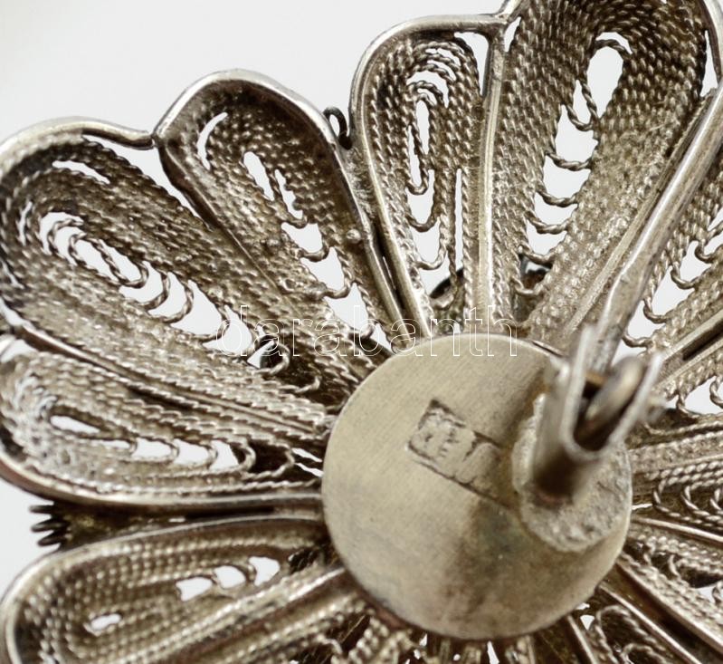Leírás: Ezüst(Ag) virág alakú filigrán kitűző, jelzett, 4,8x3,8 g, nettó: 7,1 g
