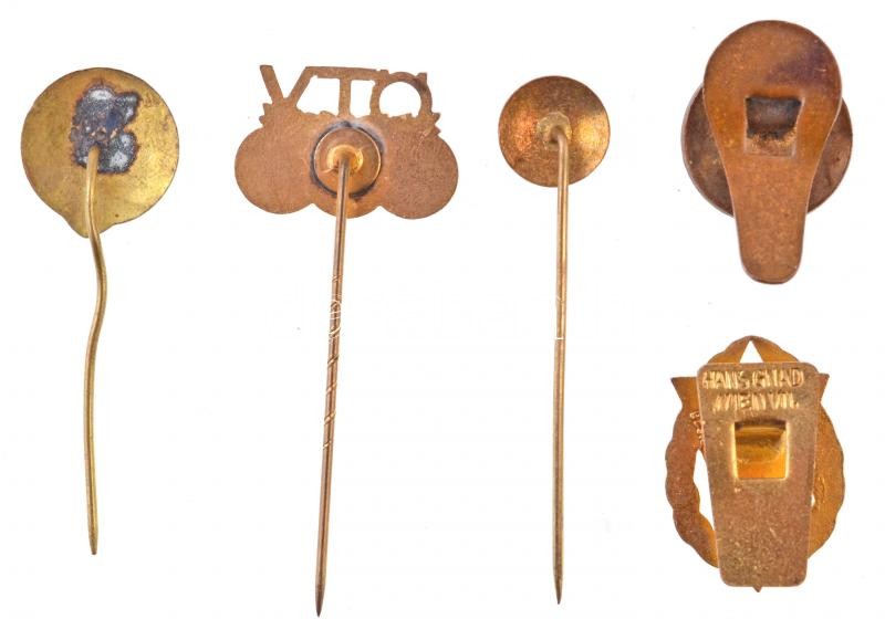 Leírás: Magyarország DN "Ferencvárosi Torna Club 1899" zománcozott fém kitűző (15mm) + Ausztria DN "Semmeringi Sportegyesület - Enzian" zománcozott fém gomblyukjelvény (15,5mm) + DN "ÖSTF" zománcozott gomblyukjelvény (16,5x28,5mm) + DN "ÖTV (Ausztriai Tennisz Egyesület)" zománcozott kitűző (14x21mm) + Csehszlovákia(?) DN "Atheltic Club Sparta" zománcozott fém kitűző (10mm) T:1,1-