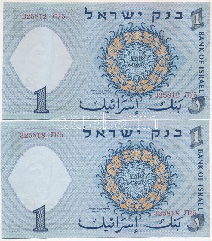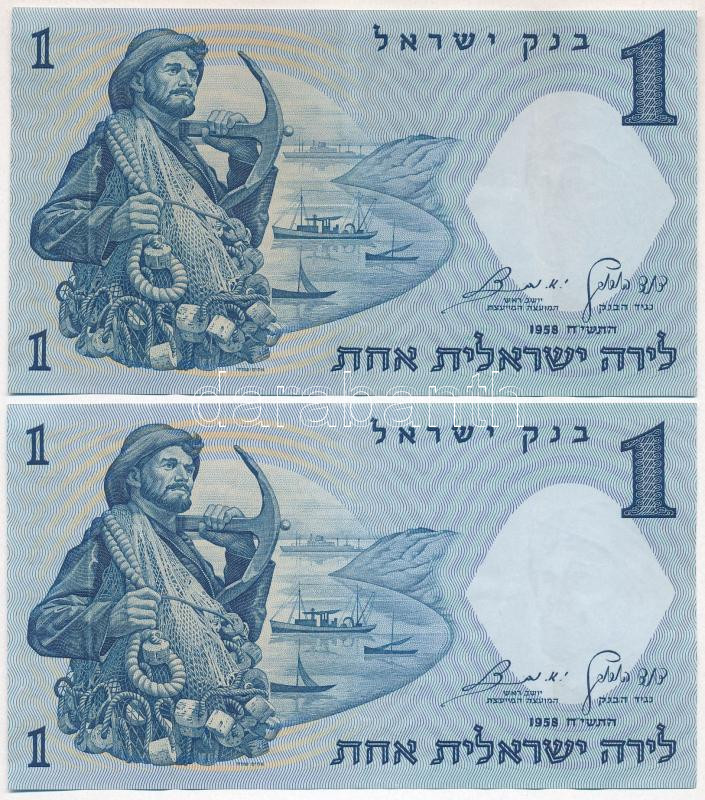 Israel 1... https://www.darabanth.com/hu/286-Gyorsarveres/286.0/Numizmatika/Kulfoldi-bankjegyek~400011/Izrael-1958-1L-2x-kozeli-sorszam-TIII-szep-ropogos-papir--Israel-1958-1-Lira-2x-close-se~II1498415