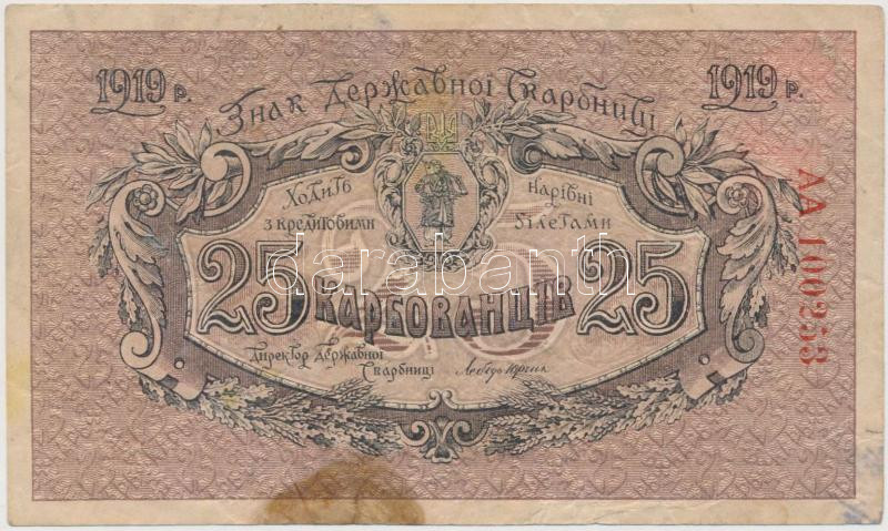 Ukraine / ... https://www.darabanth.com/hu/286-Gyorsarveres/286.0/Numizmatika/Kulfoldi-bankjegyek~400011/Ukrajna-Szimon-Petljura-Direktorium-1919-25K-TIII-III---Ukraine-Semen-Petlyura-Directorate-19~II1496754