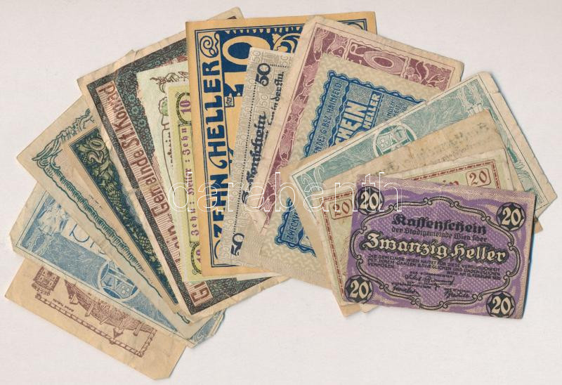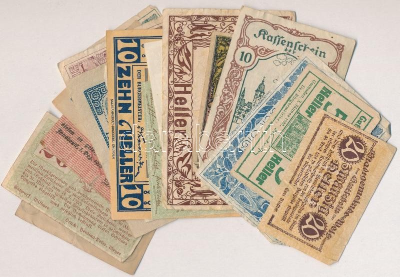 Austria 1918-1920. 5-50 Heller (20xdiff) vouchers and necessity notes, with notes from Gmunden, Wiener Neustadt, St. Konrad és St. Pölten C:XF-VG