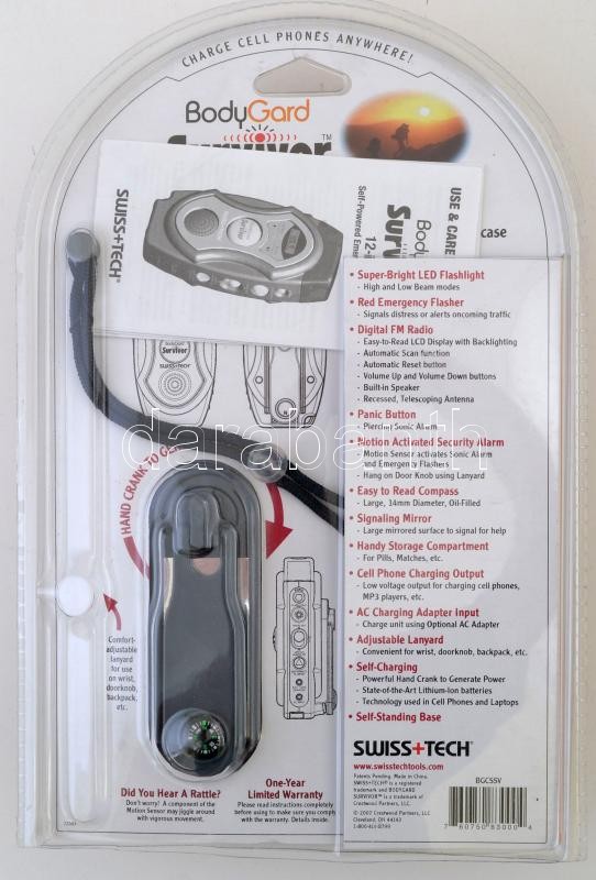 Leírás: Body Gard Survivor 12in1 multifunkciós dinamós lámpa, rádió, telefontöltő, saját dobozában, újszerű állapotban.