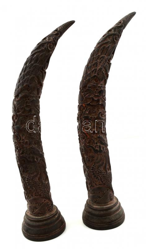 Leírás: Dekoratív agyar pár, sárkány motívumokkal, festett műgyanta?, m:39 cm (2×)