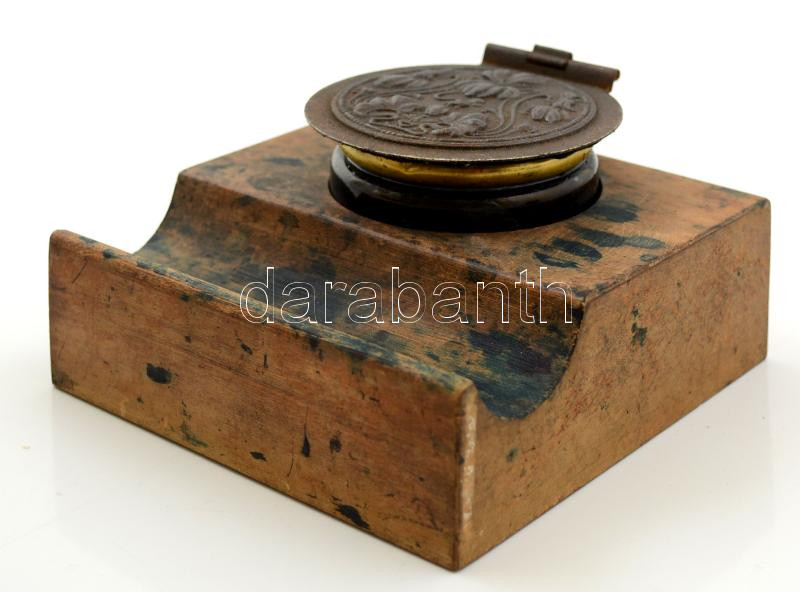 Fa-üveg asztali tintatartó díszes fém fedéllel, foltos, 12×12,5×7 cm https://www.darabanth.com/hu/287-Gyorsarveres/287.0/Festmeny-mutargy-papirregiseg-egyeb/Bolhapiac~100011/Fa-uveg-asztali-tintatarto-diszes-fem-fedellel-foltos-12C39712-5C3977-cm~II1504560
