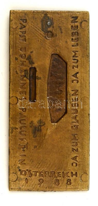 Leírás: "Ja zum Glauben, ja zum Leben. Papst Johannes Paulus II in Österreich 1988" feliratú réz emlékplakett, 16,5×7,5 cm