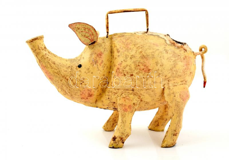 Kismalac alakú fém locsolókanna, kissé megviselt, lekopásokkal, kis sé... https://www.darabanth.com/hu/287-Gyorsarveres/287.0/Festmeny-mutargy-papirregiseg-egyeb/Bolhapiac~100011/Kismalac-alaku-fem-locsolokanna-kisse-megviselt-lekopasokkal-kis-serulesekkel-m-25-5-cm~II1503257