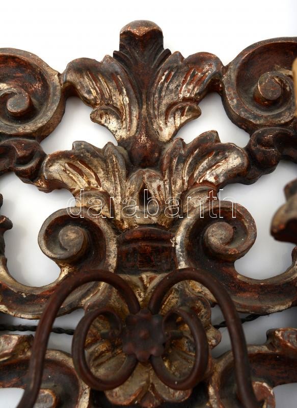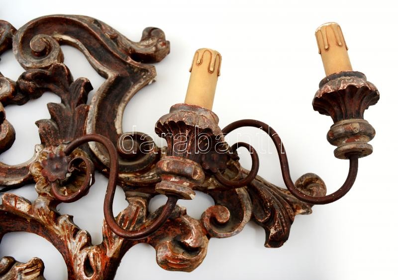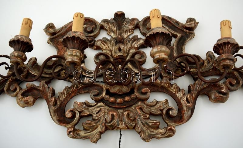 Leírás: Neobarokk hatágú falikar, faragott festett fa, kisebb hibákkal, 45×88 cm
