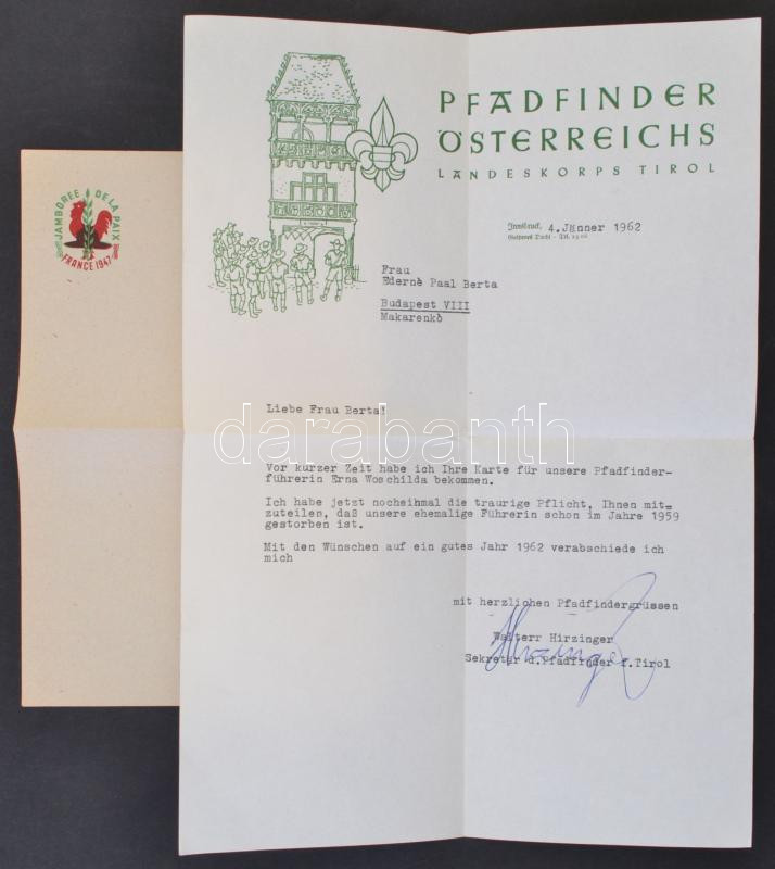 1947, 1962 Két cserkész nyomtatvány. https://www.darabanth.com/hu/287-Gyorsarveres/287.0/Festmeny-mutargy-papirregiseg-egyeb/Cserkesz~100024/1947-1962-Ket-cserkesz-nyomtatvany~II1508876
