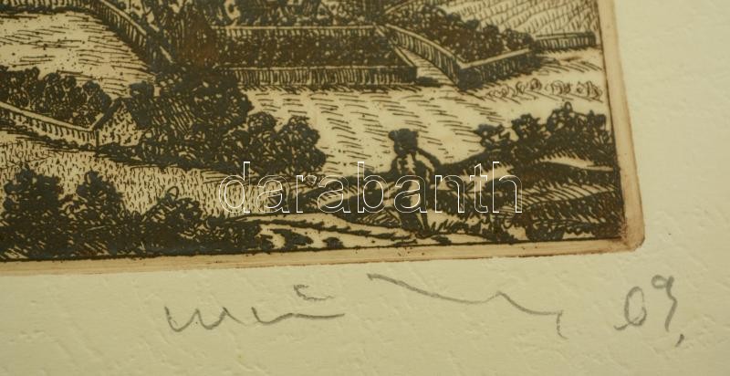 Leírás: Weisz Zsuzsa (1925-): Sopron. Rézkarc, papír, jelzett, üvegezett keretben, 22x32 cm