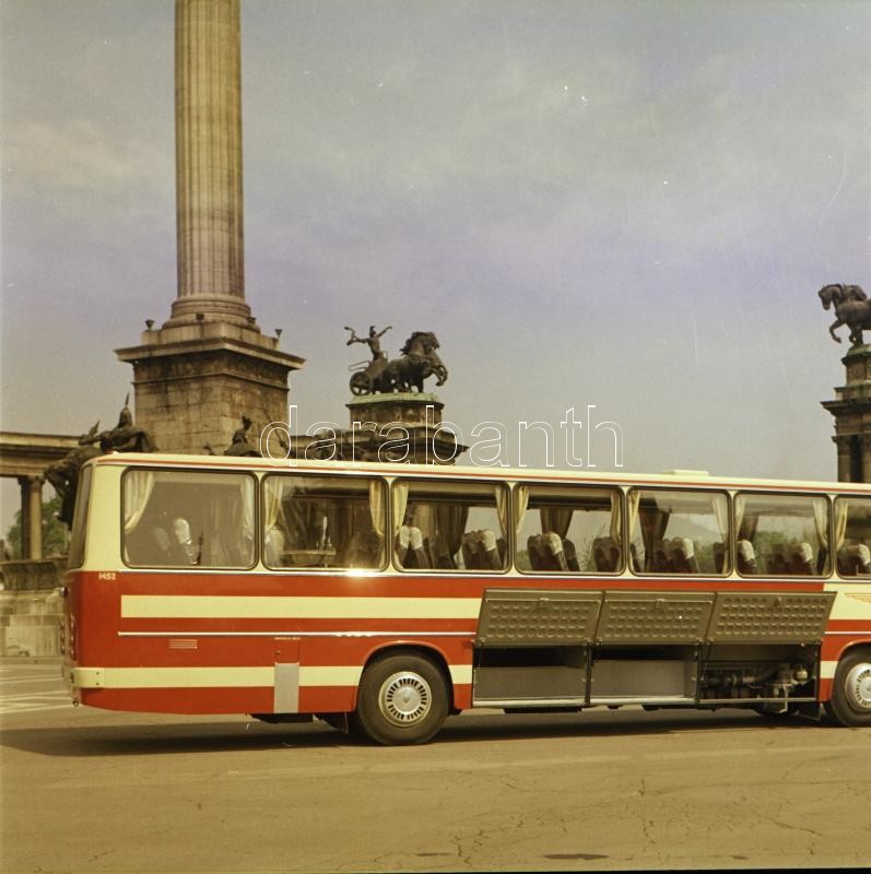 1971 Budapest, Ikarus autóbusz reklámfelvételei a város nevezetes pontjain, 4 db professzionális minőségű, szabadon felhasználható vintage negatív, 6x7 cm
