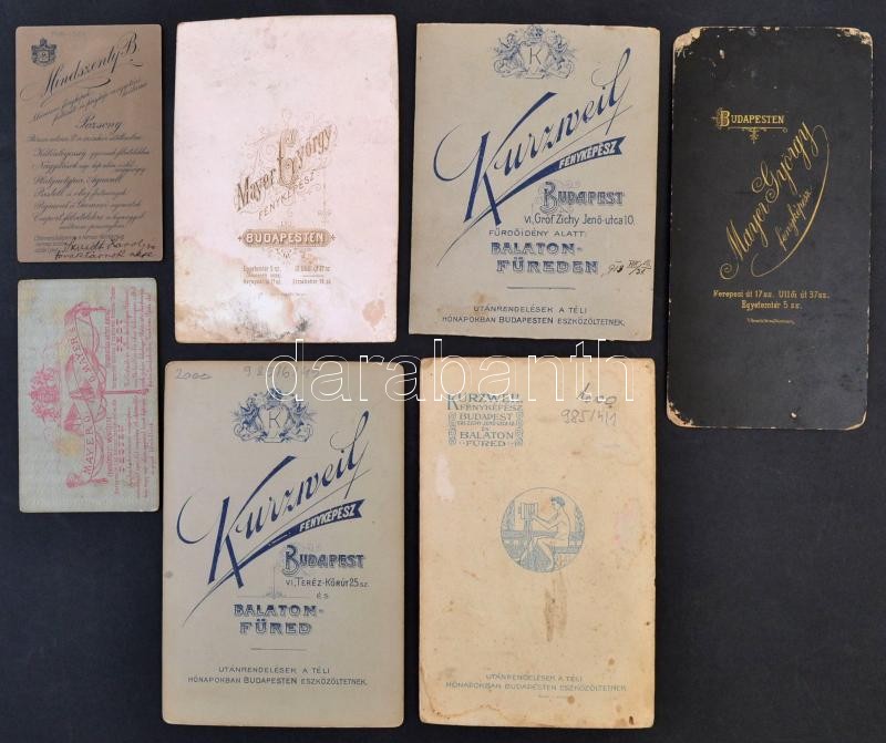Leírás: cca 1880-1910 Portrék, 7 db keményhátú fotó Kurzweil, Mindszenty és Mayer műtermeiből, különböző méretben