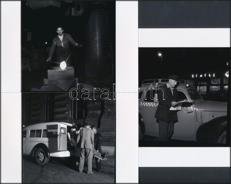 cca 1959 Budapest, ,,Éjjel is dolgoznak", Kotnyek Antal (1921-1990) fotóriporter felvételei, 6 db vintage negatív (6x6 cm) és az ezekről készült mai nagyítások, 10x15 cm