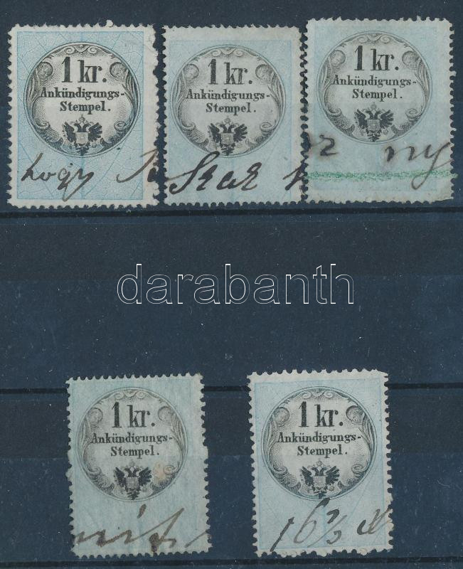 Leírás: 1854 5x 1kr hirdetménybélyeg / 5x1kr announcement stamps