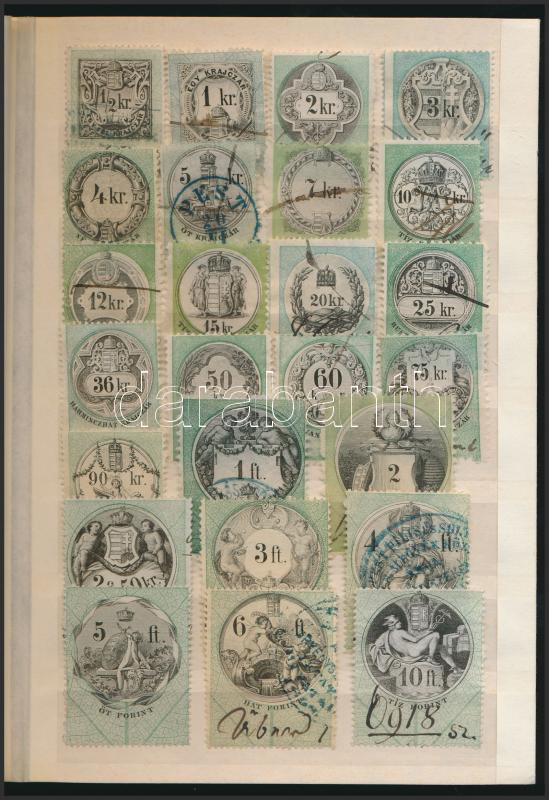 Leírás: 1868 25 db okmánybélyeg nagyobb értékekkel