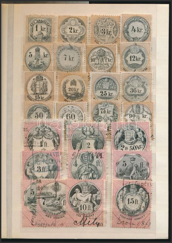 Leírás: 1880 25 db okmánybélyeg nagyobb értékekkel