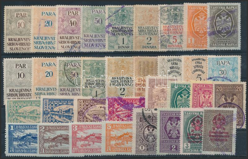Leírás: 34 db szerb okmánybélyeg stecklapon