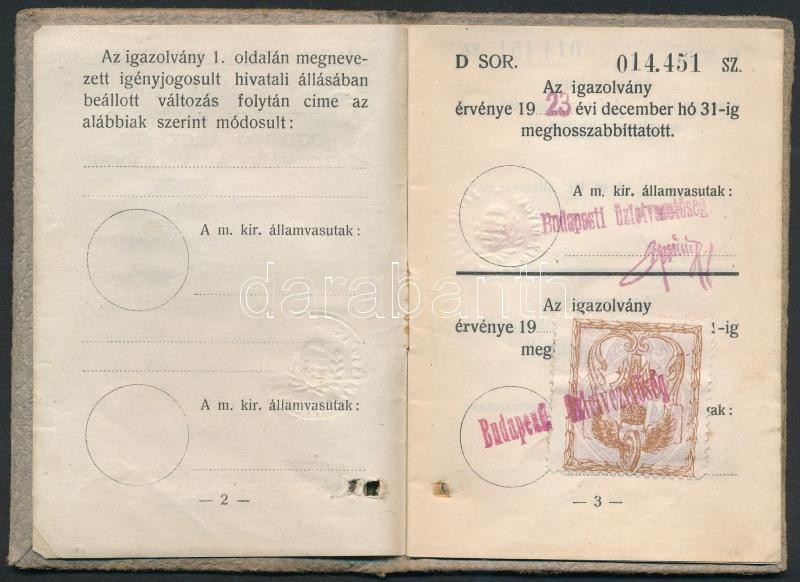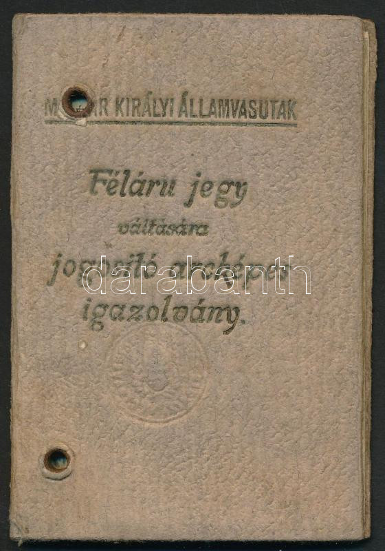 1922 Magyar Királyi Államvasutak félárú menetjegy váltására jogosító a... https://www.darabanth.com/hu/287-Gyorsarveres/287.0/Festmeny-mutargy-papirregiseg-egyeb/Okmanyok~100016/1922-Magyar-Kiralyi-Allamvasutak-felaru-menetjegy-valtasara-jogosito-arckepes-igazolvany~II1506591