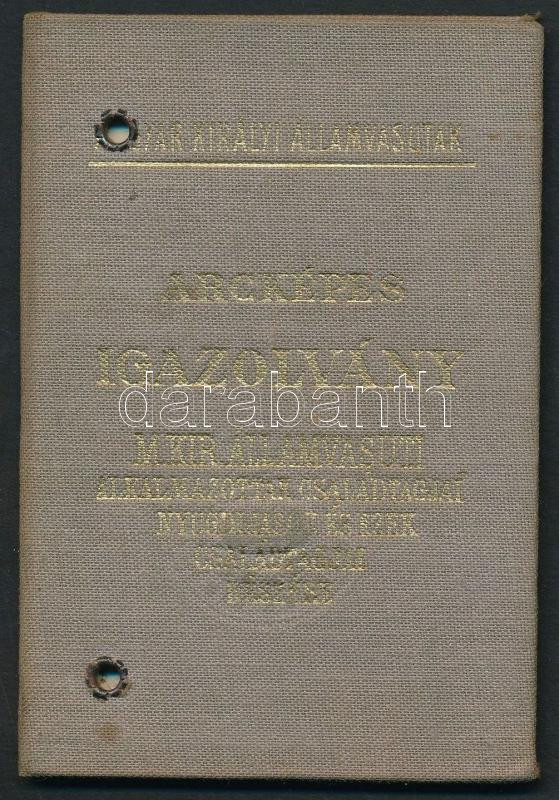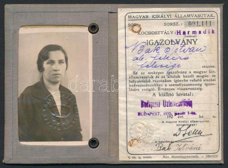 1935 Magyar Királyi Államvasutak arcképes igazolvány, vasúti alkalmazo... https://www.darabanth.com/hu/287-Gyorsarveres/287.0/Festmeny-mutargy-papirregiseg-egyeb/Okmanyok~100016/1935-Magyar-Kiralyi-Allamvasutak-arckepes-igazolvany-vasuti-alkalmazottak-csaladtagjai-reszC3~II1506606