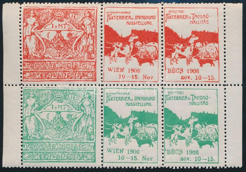 1906 Foxterrier és Tacskó kiállítás magyar-német piros-zöld levélzáró ... https://www.darabanth.com/hu/287-Gyorsarveres/287.0/Festmeny-mutargy-papirregiseg-egyeb/Parafilatelia~100014/1906-Foxterrier-es-Tacsko-kiallitas-magyar-nemet-piros-zold-levelzaro-ivdarab~II1507740