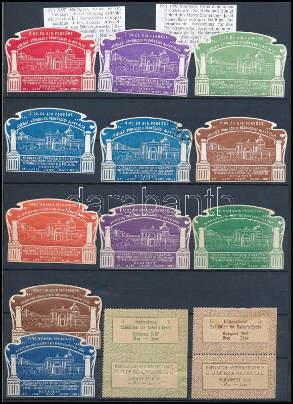 Leírás: 1907 Nemzetközi Sütőipari kiállítás 11 db levélzáró + másik változata párban (RR!)