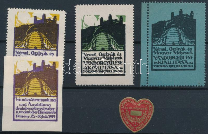 Leírás: 1914 Német, Osztrák és Magyar Méhészek Vándorgyűlése és Kiállítása Pozsony 4 klf levélzáró + Mézeskalács pecsétbélyeg