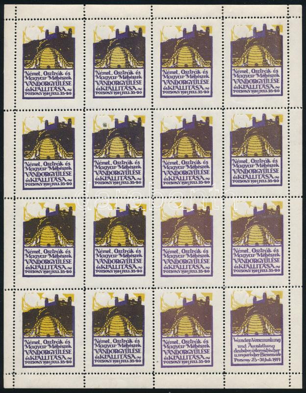 Leírás: 1914 Német, Osztrák és Magyar Méhészek Vándorgyűlése és Kiállítása Pozsony levélzáró 16-os ív