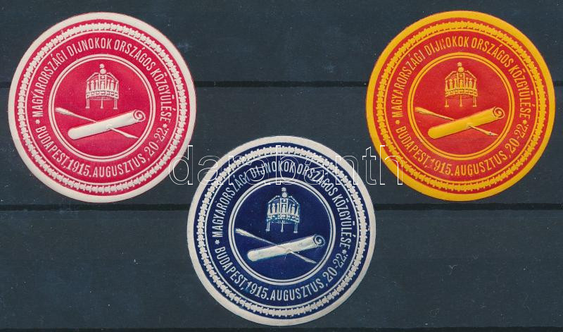 Leírás: 1915 Magyarországi Dijnokok Országos Közgyűlése 3 klf dombornyomású pecsétbélyeg