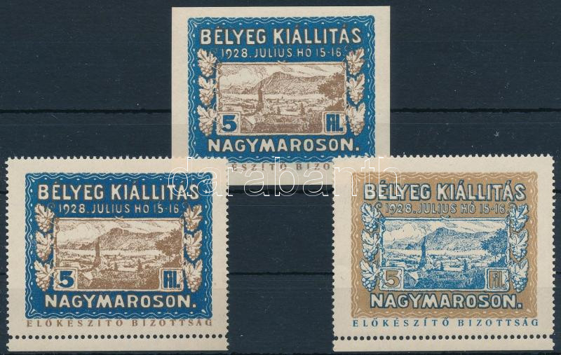 Leírás: 1928 Bélyegkiállítás Nagymaroson Előkészítő Bizottság 2 db klf fogazott és 1 db vágott levélzáró
