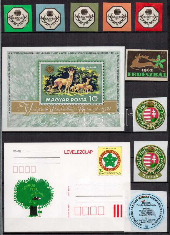 1971 Erdészet, Vadászat motívum összeállítás: levélzárók, matricák, st... https://www.darabanth.com/hu/287-Gyorsarveres/287.0/Festmeny-mutargy-papirregiseg-egyeb/Parafilatelia~100014/1971-Erdeszet-Vadaszat-motivum-osszeallitas-levelzarok-matricak-stb-A4-berakolapon~II1503258