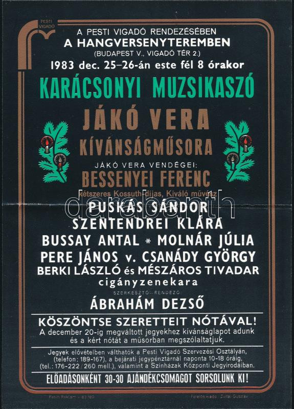 Leírás: 1983 Jákó Vera karácsonyi kívánságműsor kisplakát