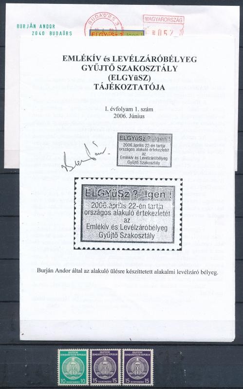 2006 ELGYÜSZ levélzárók, boríték, stb. A/4 berakólapon https://www.darabanth.com/hu/287-Gyorsarveres/287.0/Festmeny-mutargy-papirregiseg-egyeb/Parafilatelia~100014/2006-ELGYUSZ-levelzarok-boritek-stb-A4-berakolapon~II1504742