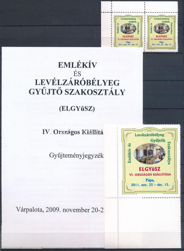 Leírás: 2009-2011 ELGYÜSZ kiállítás 3 db levélzáró + Emlékív és levélzáróbélyeg gyűjtő szakosztály gyűjteményjegyzék